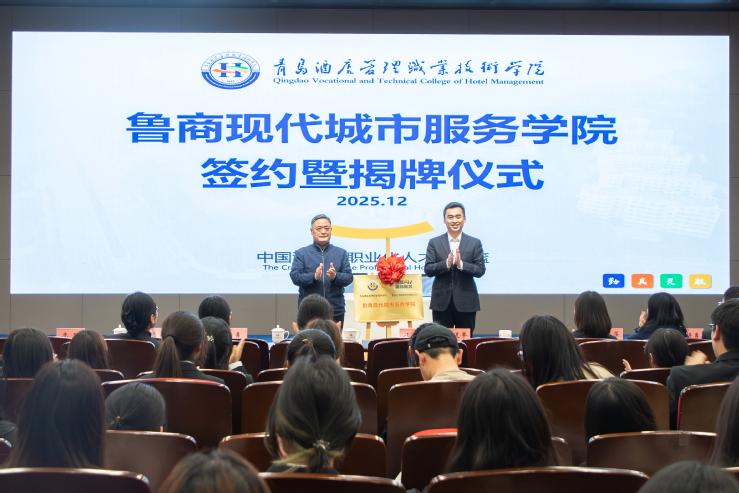 近日,青島酒店管理職院與魯商服務(wù)共建魯商現(xiàn)代城市服務(wù)學(xué)院正式揭牌。