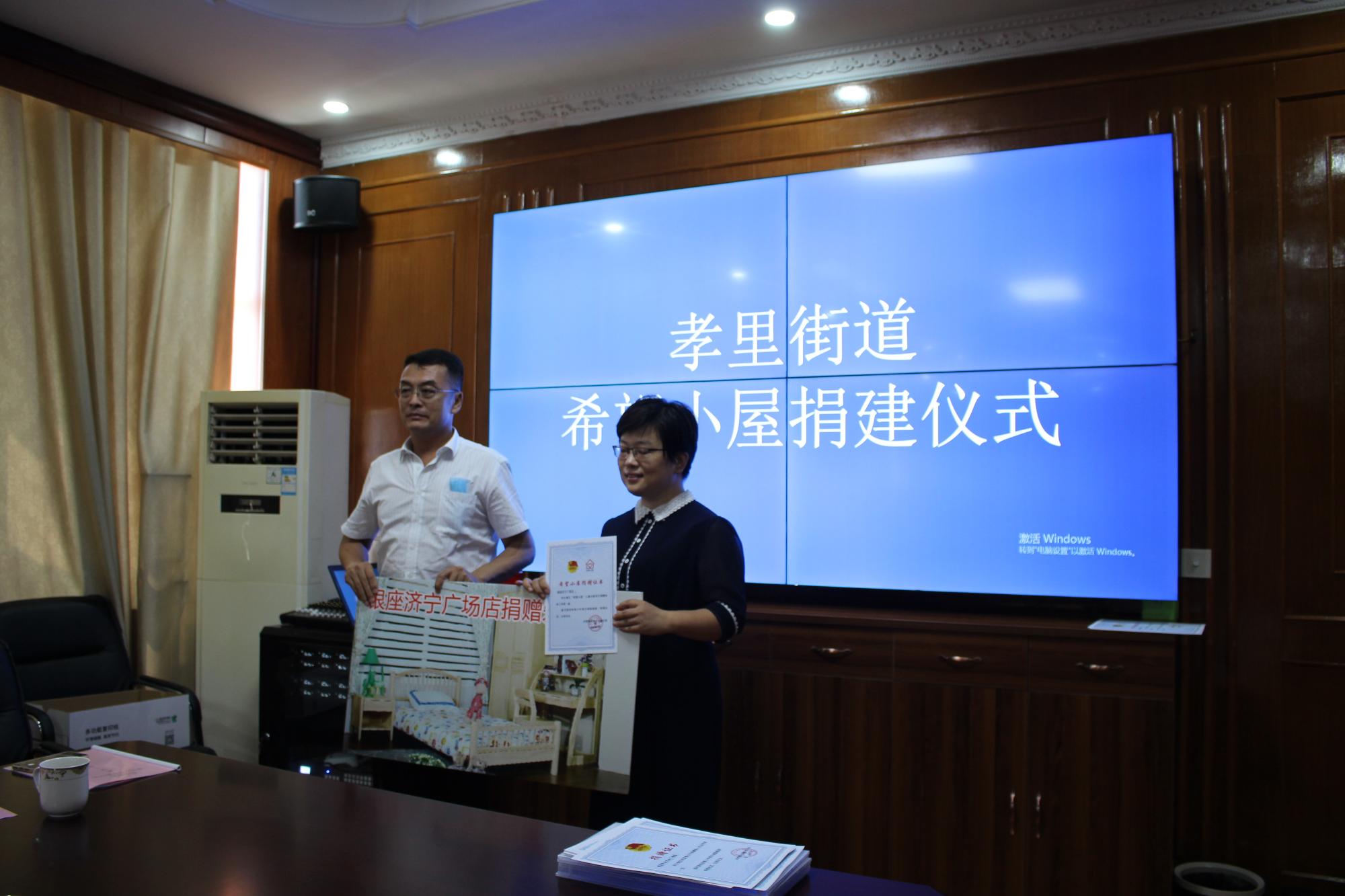 活動首先在銀座購物廣場進行了捐贈物資交接與“愛心門店”頒牌,接著到長清區孝里街道舉行了“希望小屋”捐贈活動,共向孝里街道8個貧困孩子捐贈了8套家具套裝以及價值6600元的米面油、防疫用品。參加活動的人員還分別到學生家中走訪慰問,給孩子們帶去了慰問品。